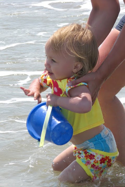 Saturday we drove up to where Danny, Theresa, Karla and Mike were camping. I had hoped to get there in time to go out on the boat, but Natalie (the champion napper) had other plans. We made it in time to watch the cornhole tourney and have dinner. Oh and Amber, Phil and I made the mistake of taking the kiddos to the beach right before dark. Well, this little water bug was up to her waste before I could get her clothes off. So she's officially had her first swim in KY Lake.