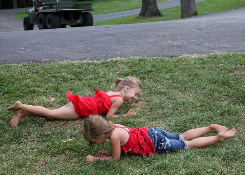 Harper and Kendel preferred to play on the Kubota, in the shade. Smart girls.
